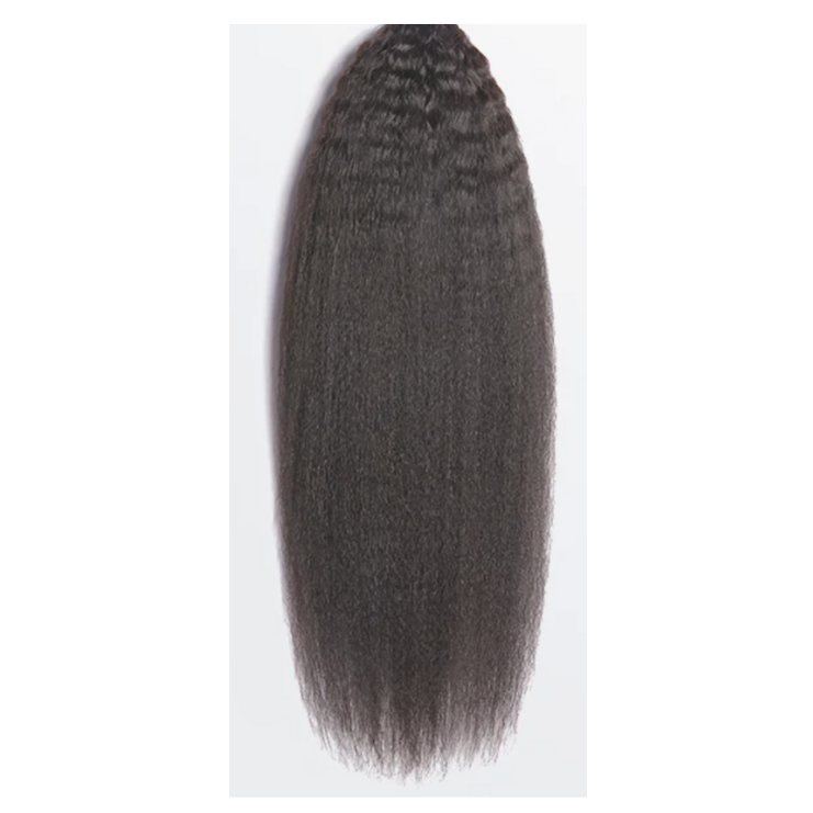 Ideal for those who adore the volume and dimension of their natural coils but seek the manageability of straight hair, our Kinky Straight extensions can be curled, flat-ironed, or worn in its natural state, granting you endless styling possibilities.